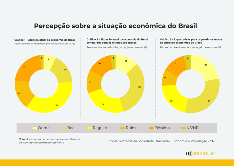 O levantamento mostra que 38% da população vê a situação atual como ruim ou péssima. Um percentual maior do que aqueles que registraram regular, ótimo ou muito boa. Mas o gerente de Análise Econômica da CNI, Marcelo Azevedo, entende que, mesmo que a população ainda se preocupe com a economia brasileira, isso tende a mudar. Para 45% dos entrevistados, a situação já foi pior e a economia melhorou nos últimos seis meses.